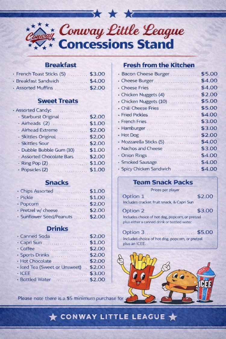 Every purchase and every helping hand supports Conway Little League and our players.