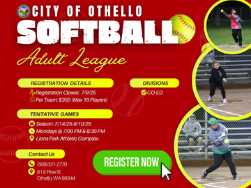 Note: A minimum of Six teams per division is required to begin the season. Teams from outside the City of Othello are also welcome to register.