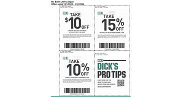 We have a partnership with Dick's Sporting Goods for the 2023 season! They are offering coupons just for MELL families to use for the holiday season! They work in store and online! You can access theĀ