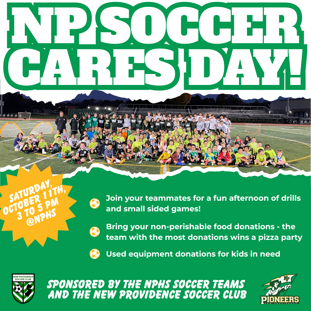Ou annual give-back event will be held at the New Providence High School (Lieder Field) on October 11th from 3-5 PM. We have an exciting day planned and all are welcome!