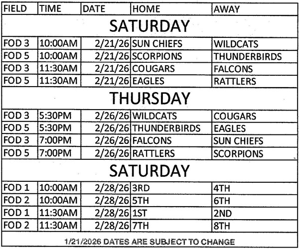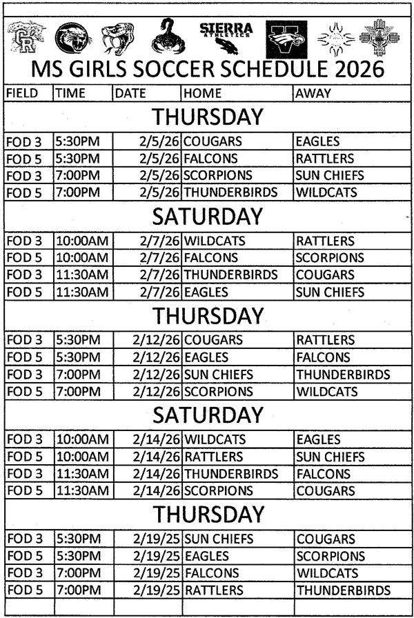 2025-26 Winter Middle School Girls Soccer StandingsW=Wins, D=Draws, L=Losses, Pts=Points, GF=Goals For, GA=Goals Against, GD=Goal Difference