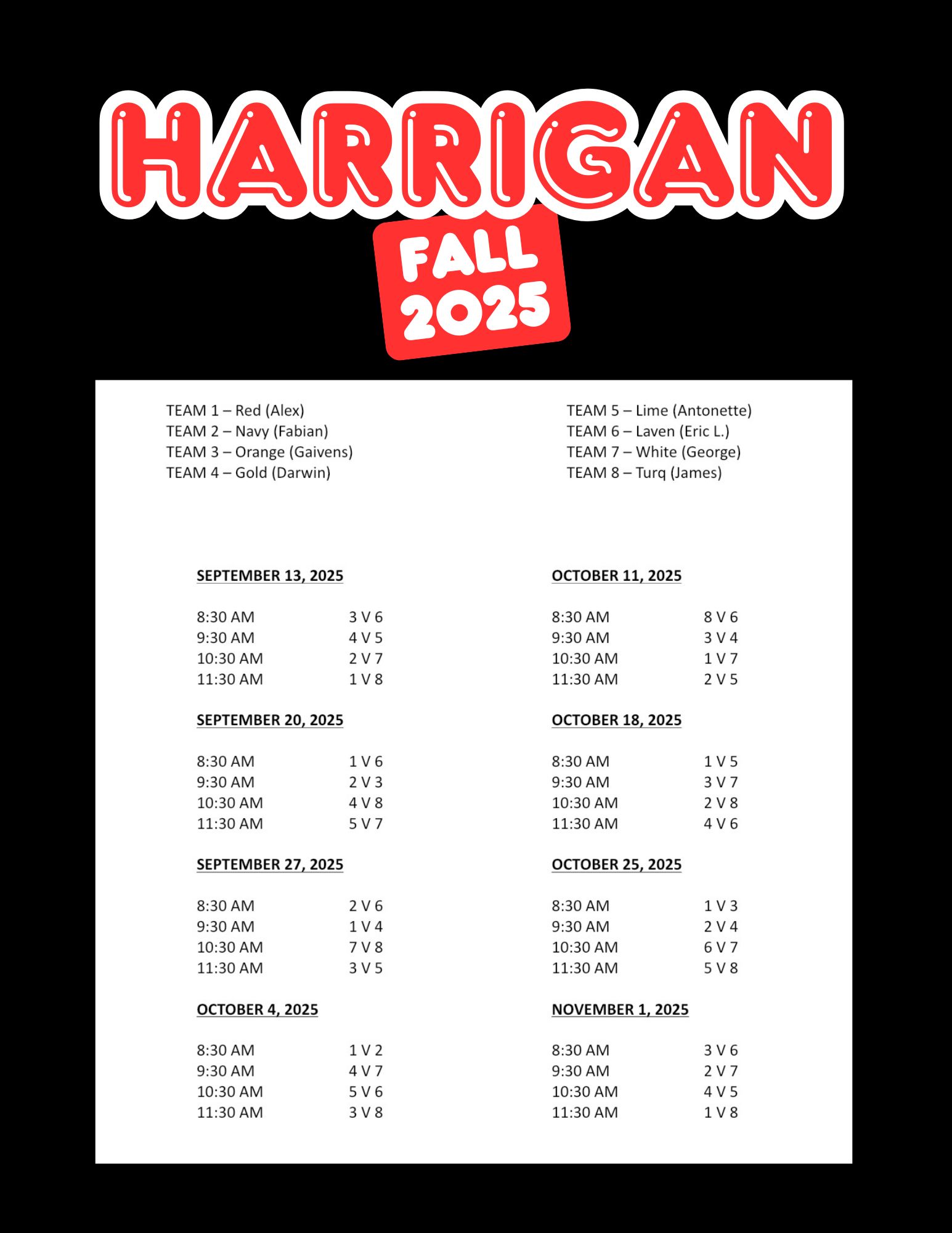 Fall 2025 Recreation Game Schedules