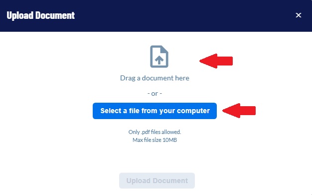 7. Select the "Upload Document" button to upload the form to the registration process.
