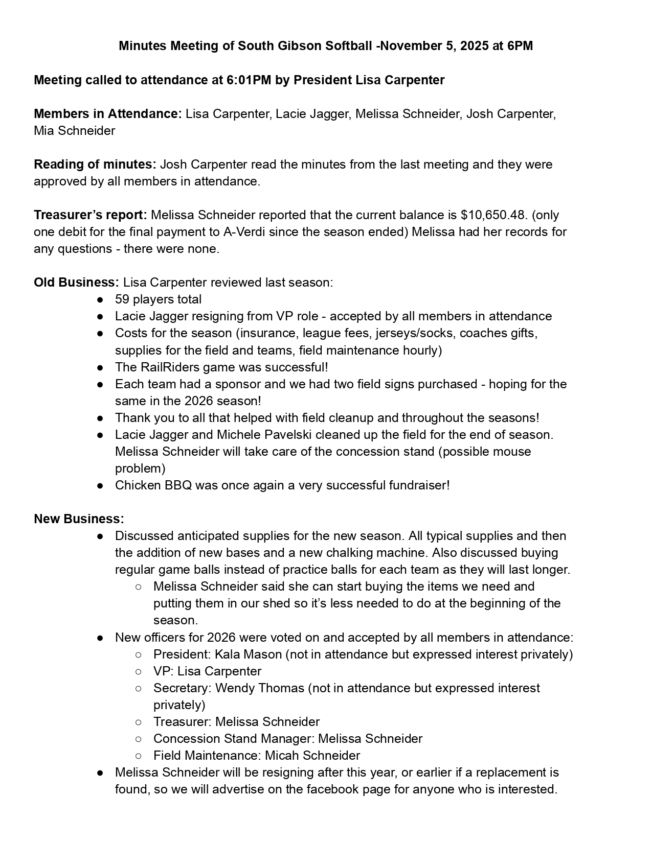 Welcome to South Gibson Softball!