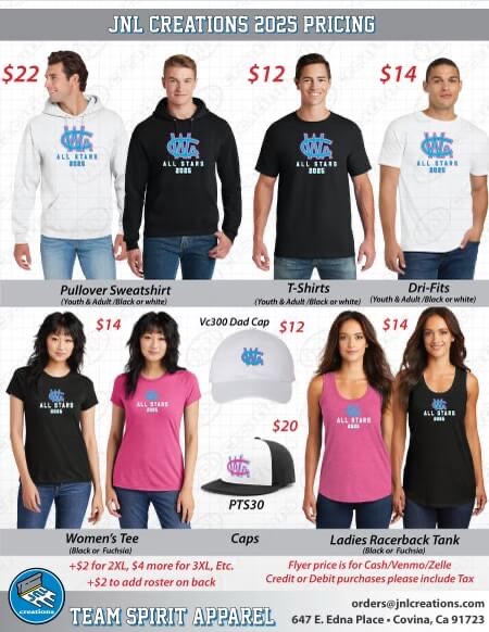 • $100 All-Star fee for uniform, umpires, and tournament costs; payment and registration on our website is required.