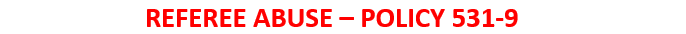 link to its policies that effectively mirror the below elements. Bottom line: Referee abuse will not be tolerated from coaches or fans. Join us in creating a better future for our game. US Soccer’s updated Referee Abuse Prevention Policy (Policy 531-9) which is designed to make youth and amateur matches more safe, more fun, and more empowering for everyone involved. Referee abuse will not be tolerated. We’re asking everyone to do their part by knowing the rules, reporting referee abuse, and embodying behaviors that represent the best of us. The updated policy includes