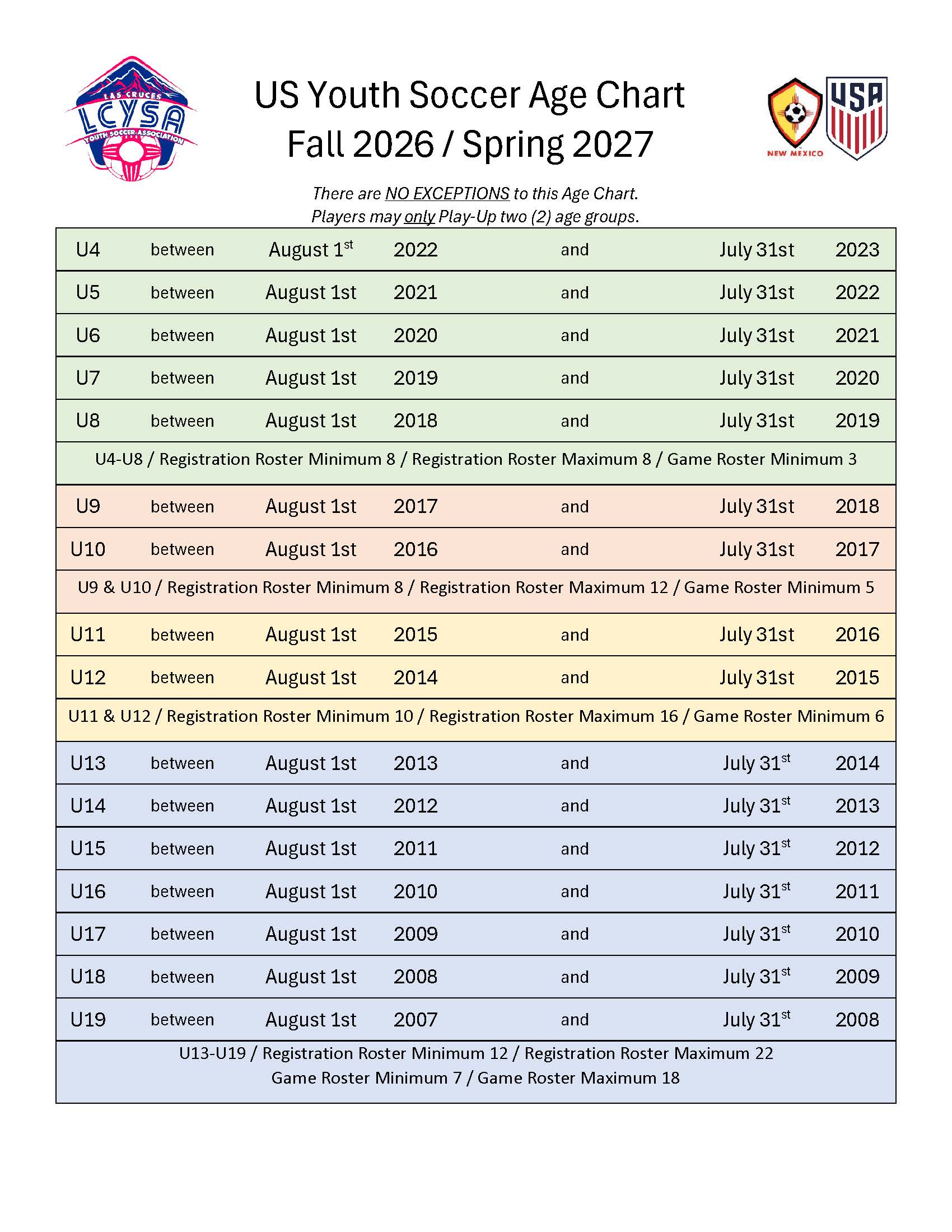 Fall 2026 / Spring 2027 Age Chart
