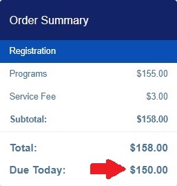 4. On the Payment screen, the Due Today amount should equal $150.00; if not, click the Back button to return to the Order Summary screen and repeat the steps above starting at step 1.