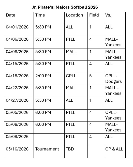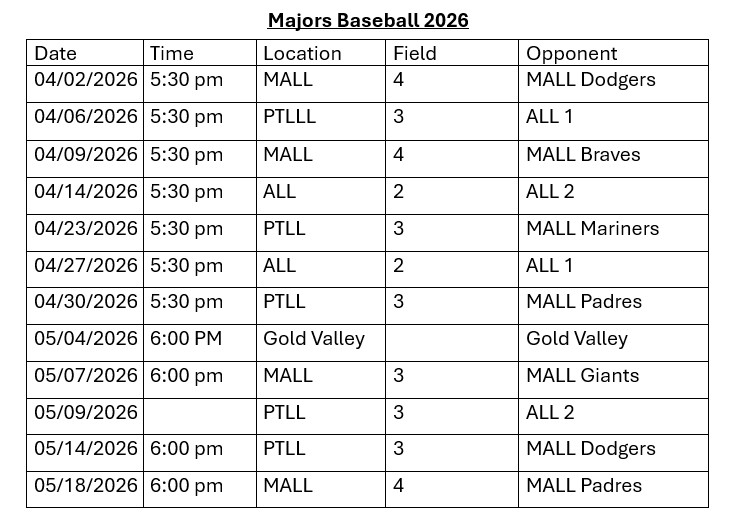 2026 MAJORS BASEBALL / SOFTBALL SCHEDULES