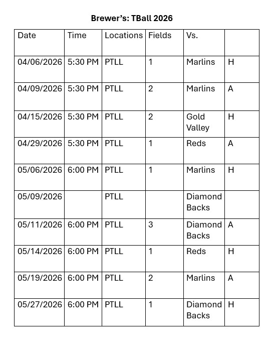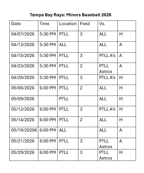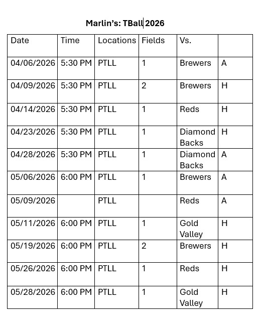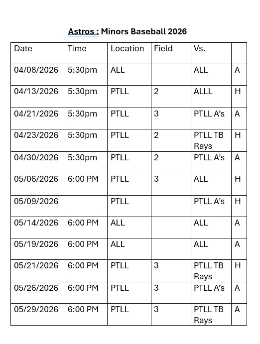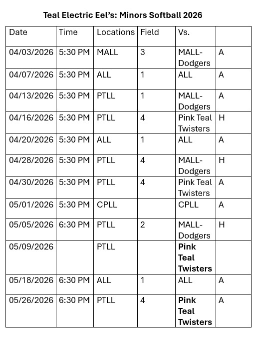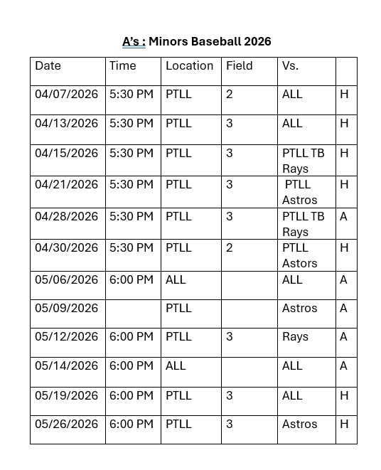 2026 MINORS BASEBALL / SOFTBALL SCHEDULES