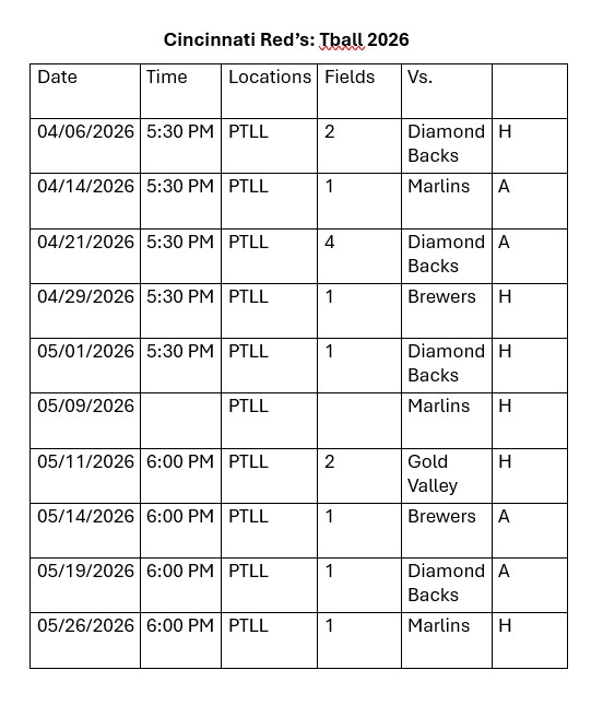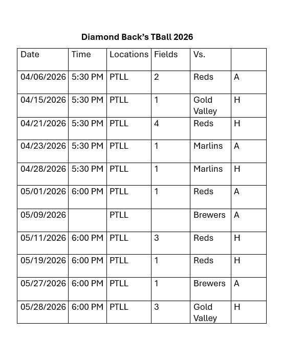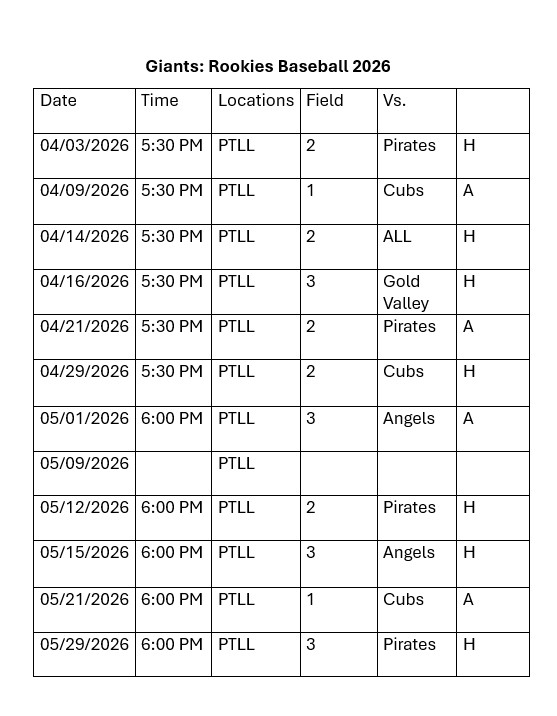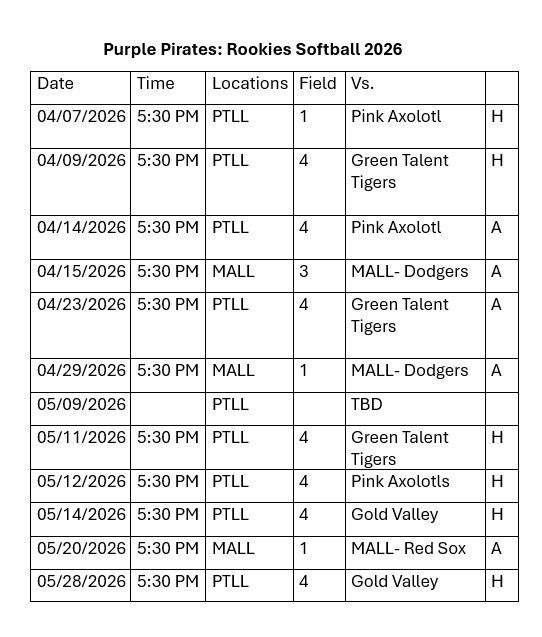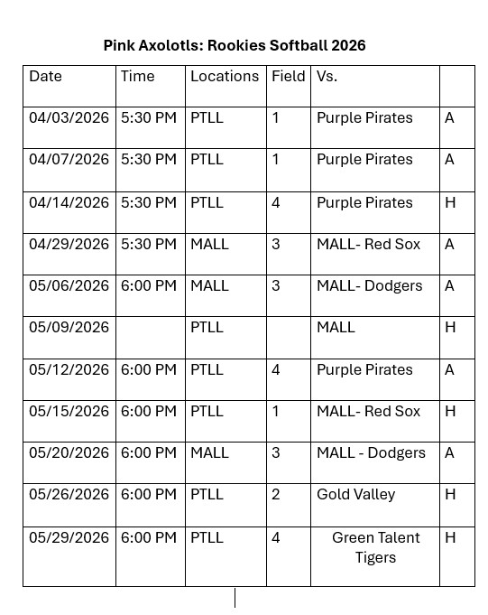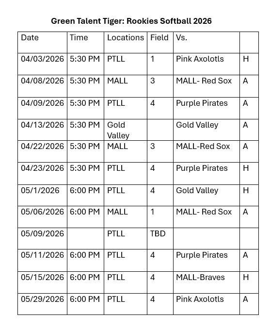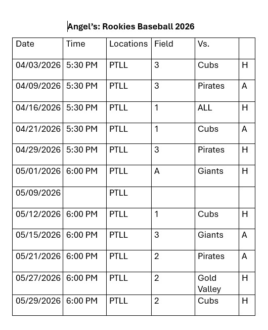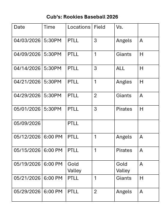 2026 ROOKIES BASEBALL / SOFTBALL SCHEDULES