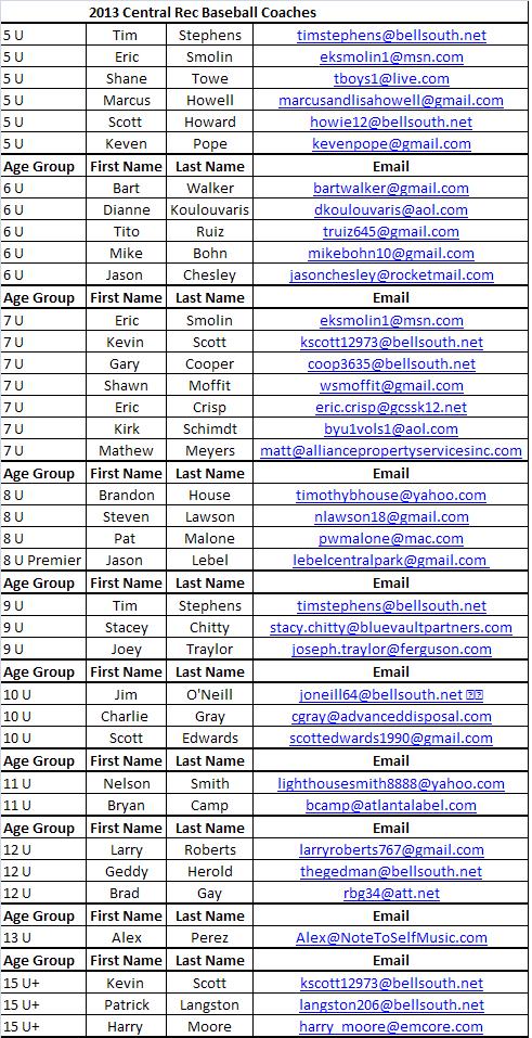 Central Park Athletic Association BASEBALL & SOFTBALL