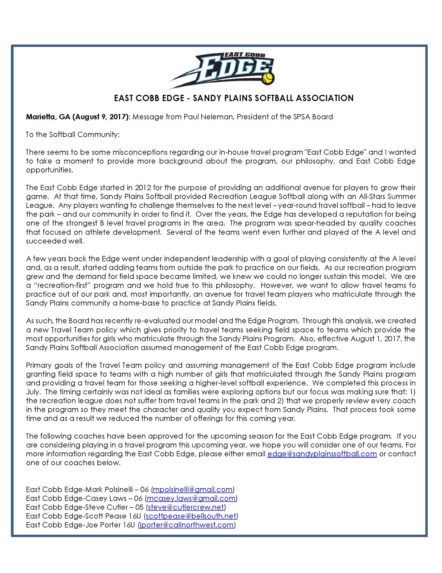 For more information regarding the East Cobb Edge, please contact [email protected]