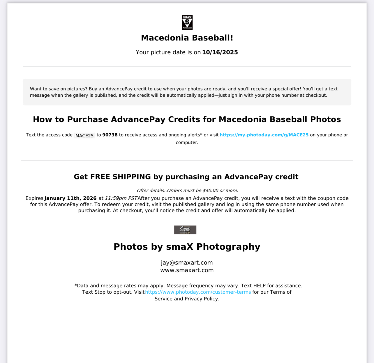 2. We will take individual pictures while we wait for the entire team to show up. Coaches, don't try and hold your team together until everyone arrives. Getting them done as they come makes the process much faster. When everyone has arrived, we will do the team shot.