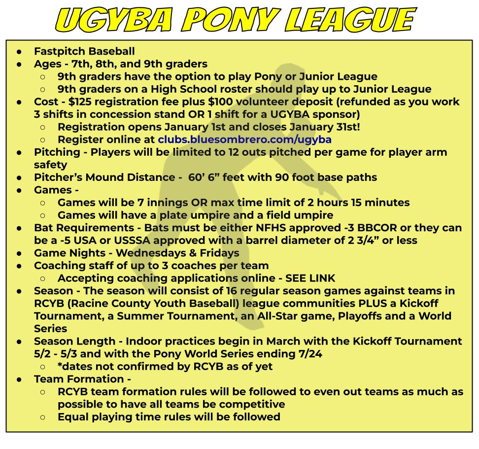Pony League Info/Rules