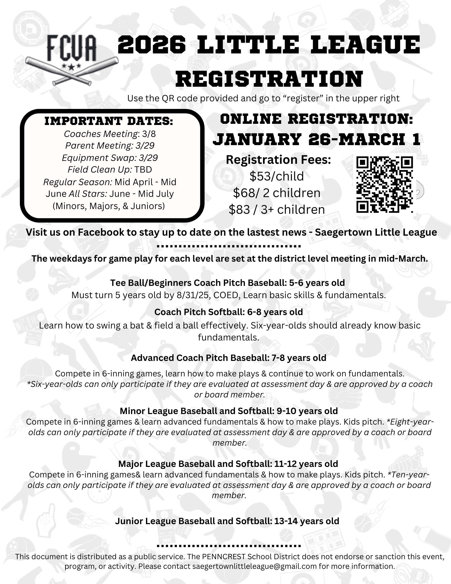 For baseball and softball players ages 5-14 who reside in Saegertown, PA