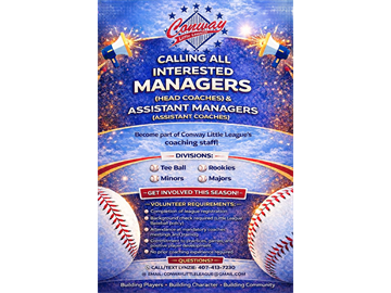 Interested in coaching this season? Conway Little League is looking for coaches and assistant coaches across multiple divisions for the upcoming season.