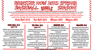 •Players will receive uniforms and be eligible to attend all of the same events (opening day, picture day, special events) as every other division of Keene Rebels Little League.