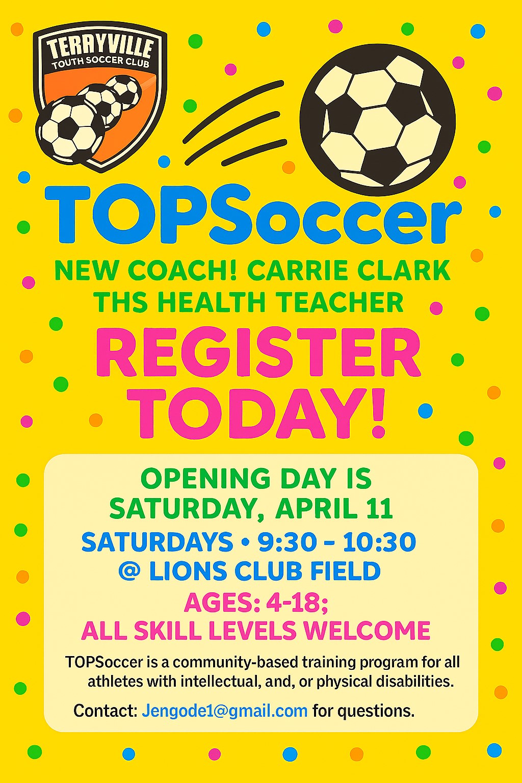 As a thank-you, each volunteer earns a $5 credit toward next season’s registration or towards TYSC‑branded gear. Snacks + swag? Yes, please!