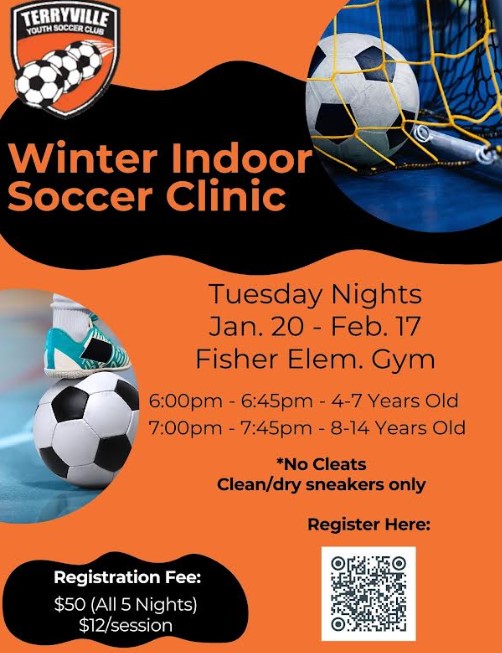 Join TYSC for Winter Clinics! Terryville High School Boys Soccer Coach Ryan McAdoo will be hosting indoor clinics for ages 4-14. You can register for all five nights or for individual nights if you can't attend all.