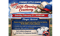 We’re excited to officially kick off the 2026 Conway Little League season at our Opening Ceremony on Saturday, February 21 at 10:00 AM.