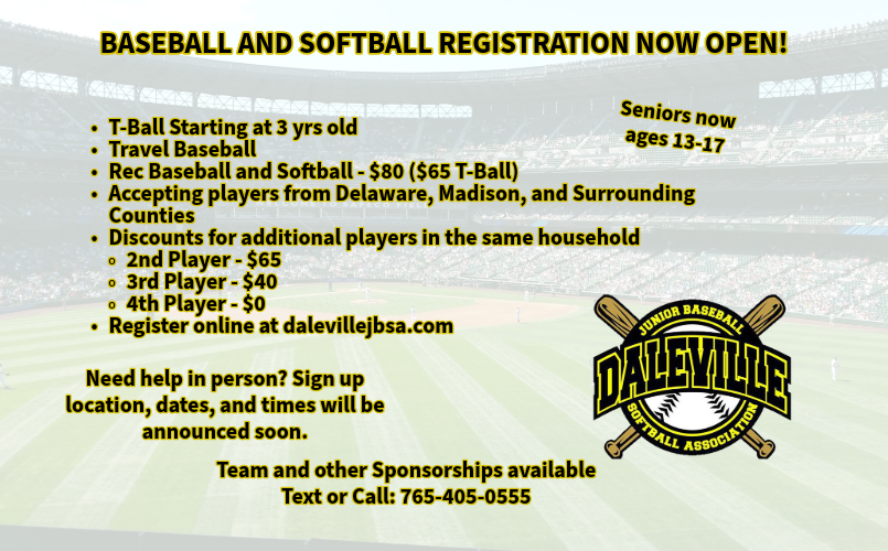 Daleville Junior Baseball & Softball Association 8325 S. Reserve Street Daleville, Indiana 47334