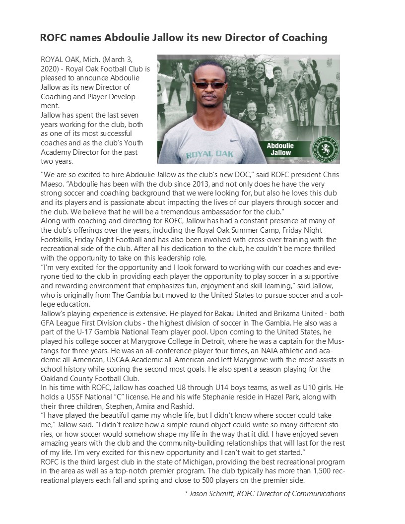 Registration is now open for Spring REC soccer. To register, simply create an ROFC account and register online.  League begins in April 2021.