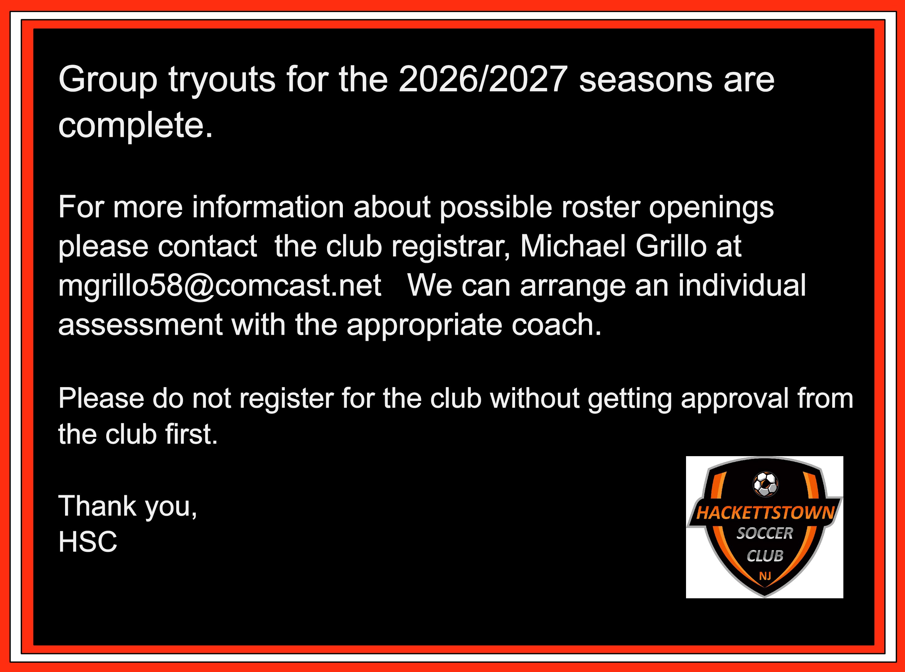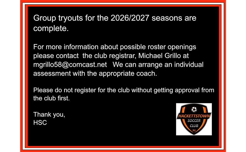 Hackettstown Soccer Club PO Box 3 Hackettstown, New Jersey 07840
